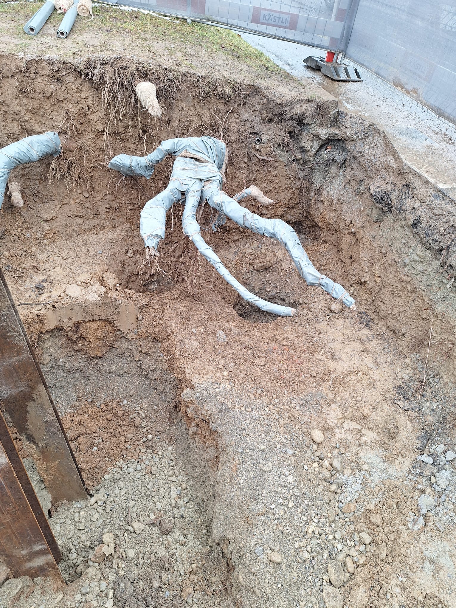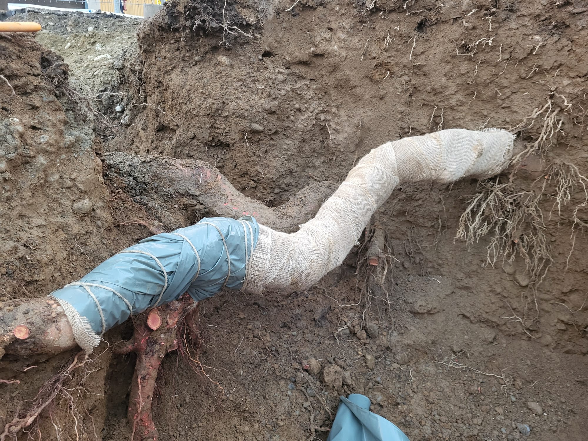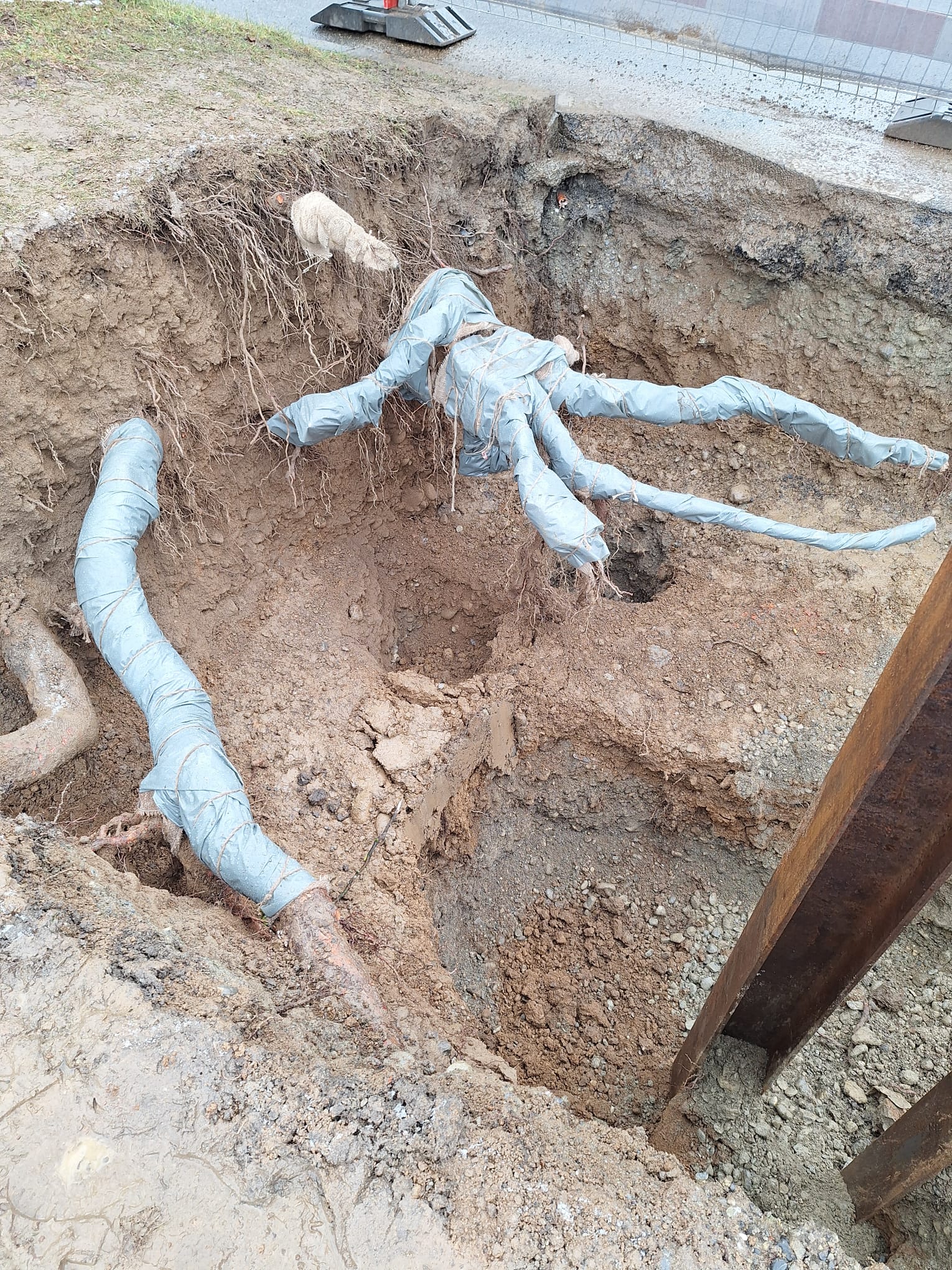 In einem minimalinvasiven Prozess legen wir Wurzeln von Hand frei, mit Ruhe und höchster Konzentration. Wir schützen diese freigelegten Lebensadern über Monate hinweg gegen Hitze, Frost und mechanische Einwirkung. Wir sind die Instanz vor Ort, die dafür sorgt, dass die Vitalität der Bäume trotz der massiven Erschütterungen und der Wucht der schweren Maschinen unversehrt bleibt.